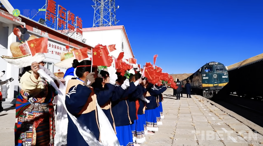 圖為首批旅客在雁石坪乘降所乘車遠行 圖源:那曲融媒