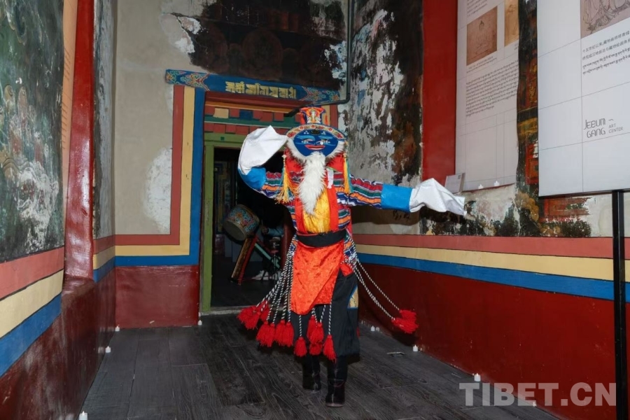 吉本崗藝術(shù)中心作為西藏首座經(jīng)保護(hù)性改造而成的公共文化空間,前身為19世紀(jì)古建——吉崩崗拉康。其獨(dú)特的立體壇城結(jié)構(gòu)、珍貴的《香巴拉之戰(zhàn)》清代愛國(guó)主義壁畫等文化遺產(chǎn),為此次非遺展演提供了深厚的歷史背景與空間底蘊(yùn)。活動(dòng)創(chuàng)新采用“雙回字形”沉浸式布局,將古建外廊的常設(shè)展與內(nèi)廊當(dāng)代藝術(shù)展巧妙結(jié)合,設(shè)立八個(gè)固定表演點(diǎn)位。觀眾以“循環(huán)觀演+自由漫游”的方式穿梭其間,在移步換景中感受非遺技藝與當(dāng)代藝術(shù)的交融共鳴,實(shí)現(xiàn)“空間、非遺與新生”的和諧共振。