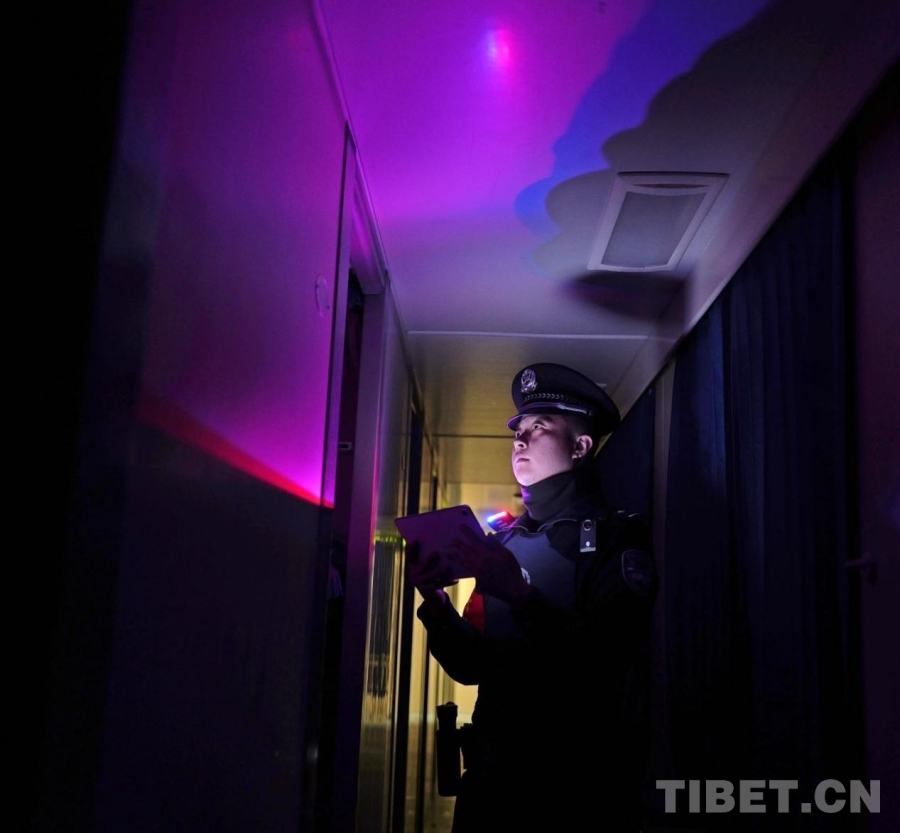 圖為夜間行車期間,乘警嚴格開展人票證一致核查工作