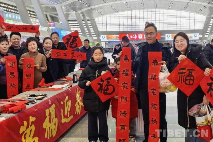 圖為西寧站春運(yùn)首日游客參與迎新春活動(dòng)