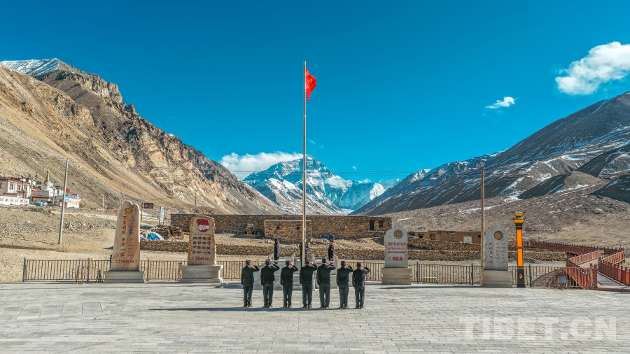 海拔5200米的珠峰大本營廣場上,西藏邊檢總站日喀則邊境管理支隊珠峰邊境派出所全體民警整齊列隊。高原的風掠過雪山,揚起深色制服的衣角。