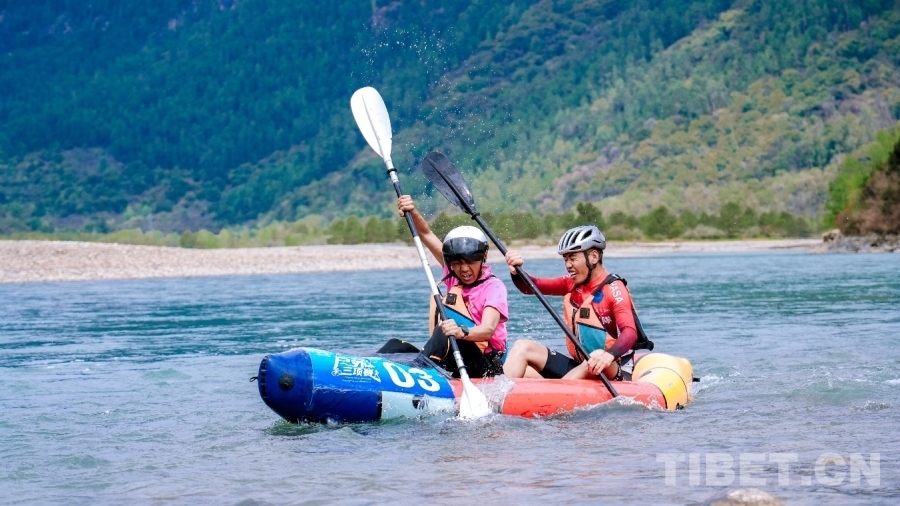 比賽依托易貢鄉(xiāng)獨特的高原生態(tài)資源和高海拔訓(xùn)練基地優(yōu)勢,設(shè)置山地騎行、雙人皮劃艇、高原越野跑三大項目,全程28.5公里的賽道串聯(lián)易貢湖、原始森林、油菜花田,讓選手在競技中飽覽雪域春日盛景。賽事采用“兩人一組、不限性別”的自由組隊模式,吸引全國58支隊伍、116名運動員參賽,涵蓋專業(yè)選手與戶外愛好者,充分體現(xiàn)全民參與理念。賽場旁,當?shù)厝罕姛崆橹?,民俗風(fēng)情與賽事氛圍相得益彰。