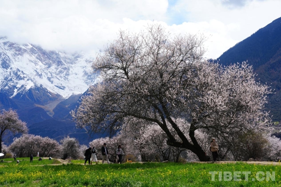 4月4日,索松村桃花樹、雪山、與游人交織的景色 攝影:張藝彤