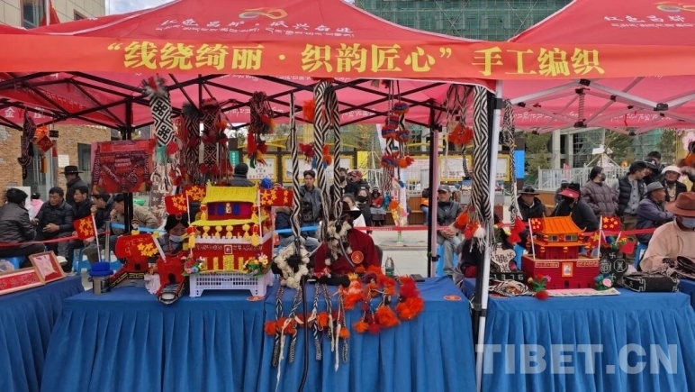 西藏洛隆縣集市上的手工編織體驗(yàn)攤位
