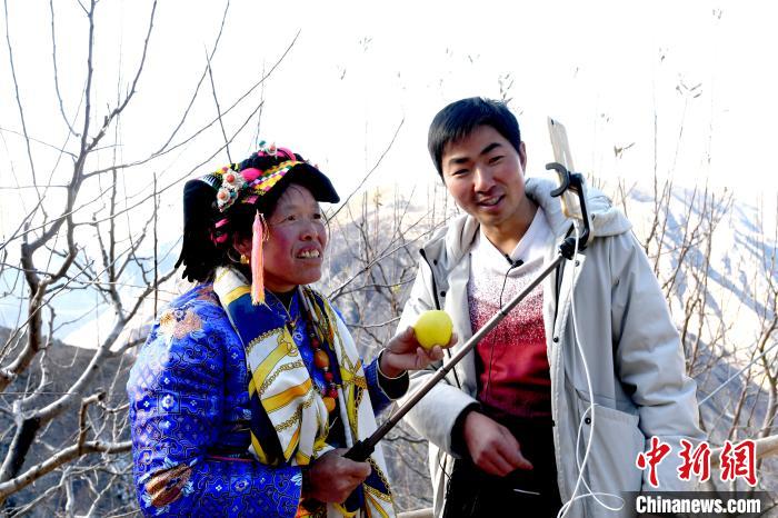 午飯后,張飛按約來(lái)到畢含珍家,幾位身著傳統(tǒng)藏袍的熱心鄰居正在院中幫忙裝箱蘋果。張飛先拍攝了一條短視頻,隨后又支起穩(wěn)定支架,將鏡頭對(duì)準(zhǔn)堆滿院落的蘋果,開始直播,最高峰時(shí)有5000人同時(shí)在線觀看。不到40分鐘,第一批裝箱的40箱蘋果便被網(wǎng)友一搶而空。