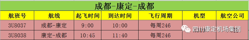 3月5日,記者從四川康定機場集團獲悉,甘孜州內(nèi)康定、稻城、格薩爾三大機場航線航班已于日前陸續(xù)恢復,調(diào)整后的航線航班為:成都—康定航班每周執(zhí)飛周二、周四、周六,特價機票單程低至399元,往返低至699元;成都—稻城航班每天1班;成都—格薩爾航班每周執(zhí)飛周一、周三、周五、周日。具體以預定時查詢?yōu)闇省?刀C場集團航線航班查詢訂票熱線:028—61512291。