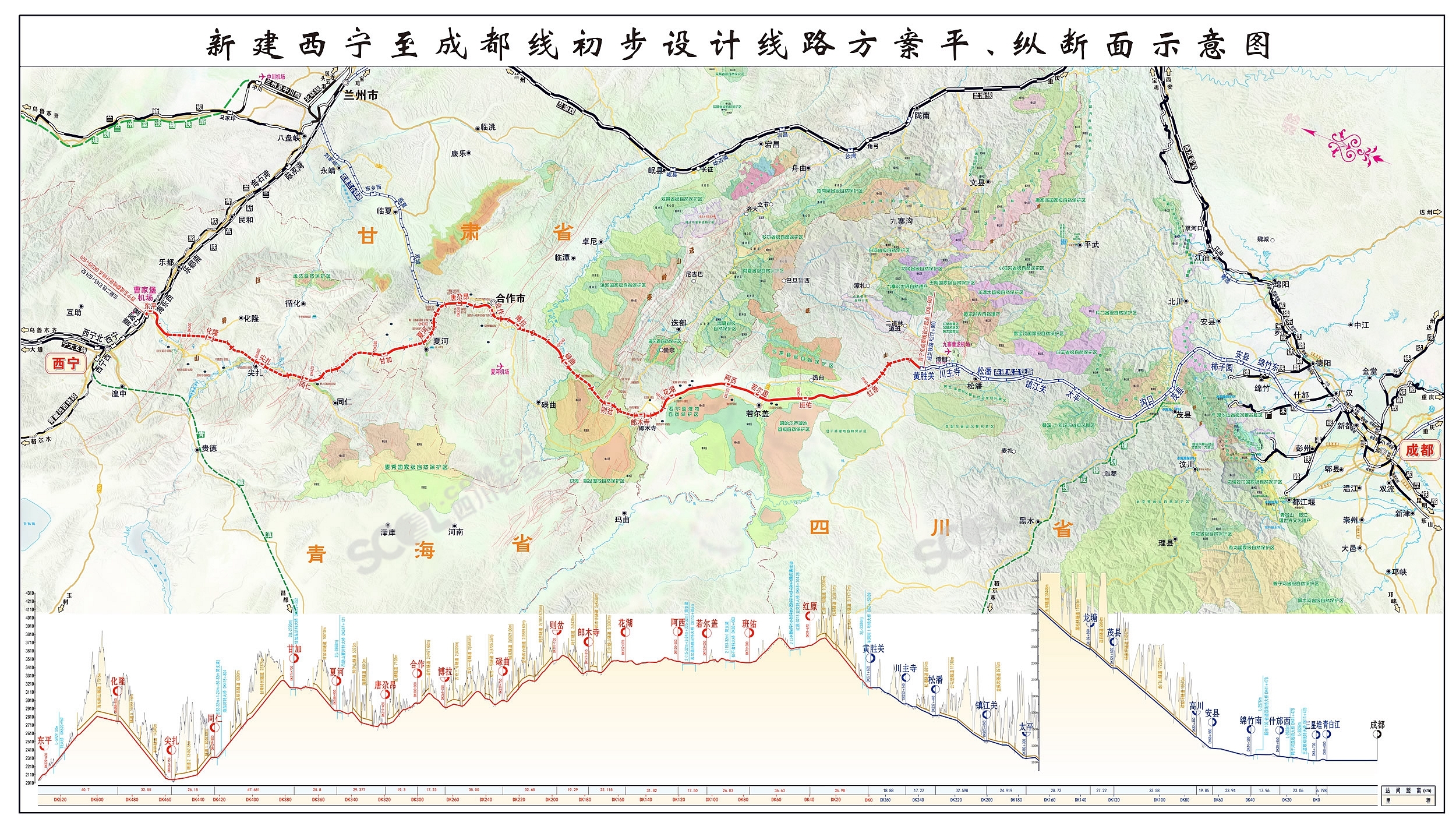 西寧至成都鐵路走行于青藏高原東部邊緣與黃土高原過渡地帶,全線海拔在2000米以上,四川省境內(nèi)段海拔均高于3000米,其中若爾蓋到松潘之間的越齡地帶軌面標(biāo)高3760米,是全線海拔最高點(diǎn)。