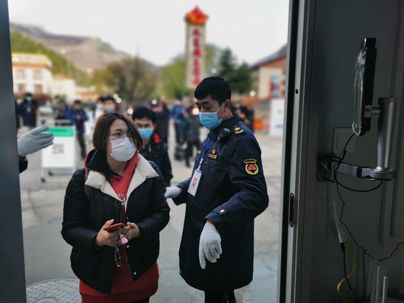 在現(xiàn)場,游客們均按照要求,間隔安全距離排隊。但與以往排隊入園不同的是,現(xiàn)場除了驗票,工作人員還會檢測體溫并檢查有無佩戴口罩。記者了解到,游客將統(tǒng)一在藍(lán)天停車場臨時游客中心乘坐觀光車進(jìn)入景區(qū),且全程必須佩戴口罩,保持安全距離,并服從景區(qū)檢測點體溫檢測等。景區(qū)對未持身份證件和未按規(guī)定佩戴口罩的游客,將按照疫情防控期間相關(guān)規(guī)定,拒絕辦理入園手續(xù)。