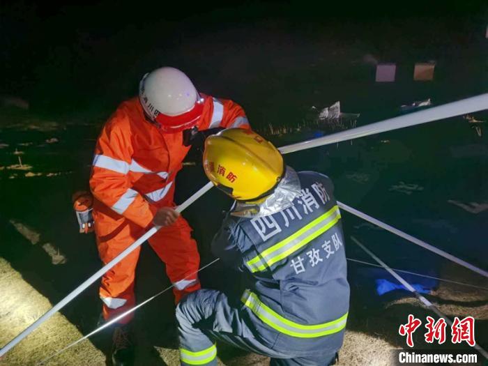 消防救援人員正在震區(qū)搭建應(yīng)急救援帳篷。石渠縣供圖