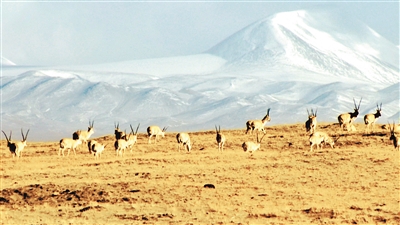 保護(hù)站附近正在覓食的藏羚羊。