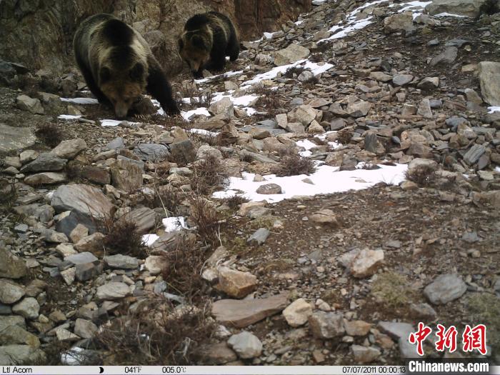 圖為可可西里境內(nèi)的棕熊??煽晌骼锕芾硖幑﹫D