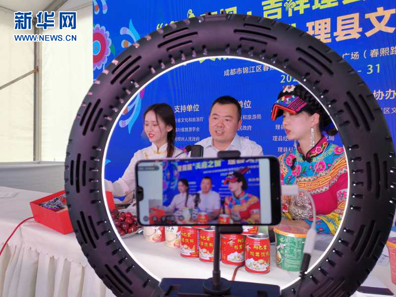 推介活動中,理縣推出了田園采摘休閑游、溫泉康養(yǎng)舒心游、藏羌民宿體驗游、孟屯河谷避暑游、米亞羅紅葉攝影游、高山滑雪暢快游六條特色旅游線路,展現(xiàn)了理縣桃坪羌寨-甘堡藏寨旅游景區(qū)、畢棚溝景區(qū)、孟屯河谷景區(qū)、米亞羅景區(qū)等的獨特魅力。傳統(tǒng)的藏羌歌舞表演、藏羌文創(chuàng)產(chǎn)品展和藏羌民俗風(fēng)景攝影展向成都市民展示了理縣的自然風(fēng)光和燦爛的藏羌文化?,F(xiàn)場,理縣縣長王世偉通過直播帶貨,為理縣甜櫻桃、松茸、手工文創(chuàng)等代言。