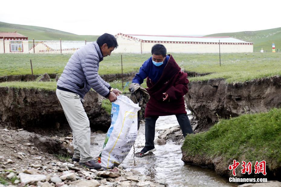 7月21日,青海省海北藏族自治州剛察縣伊克烏蘭鄉(xiāng)剛察貢麻村的吉科加(左)、索南木旦巴(右)兩人正在草場上的小河中撿拾垃圾。2008年,萬瑪扎西路在村支書的支持下,與索南木旦巴、仁增才讓、吉科加三個人組建了義務(wù)環(huán)保隊,自此一干就是12年。他們在撿拾垃圾的同時進(jìn)行著環(huán)保宣傳,希望從源頭減少垃圾。仁增才讓說:“現(xiàn)在草原上的垃圾幾乎是看不到了?!敝行律缬浾?馬銘言 攝