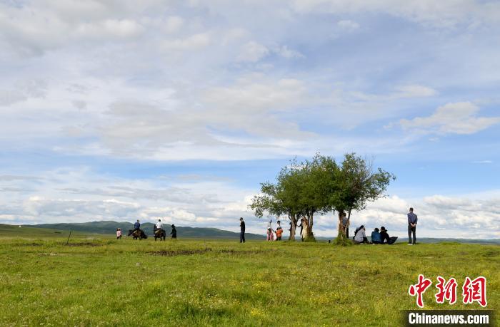 夏日的四川省阿壩州紅原草地,綠草如茵,廣袤無(wú)垠,藍(lán)天、白云、牛群構(gòu)成了一幅幅美麗的圖畫(huà),美不勝收。