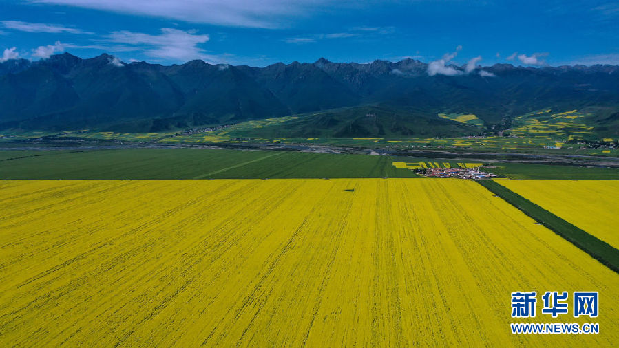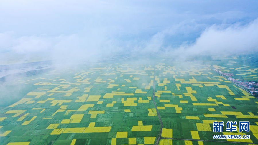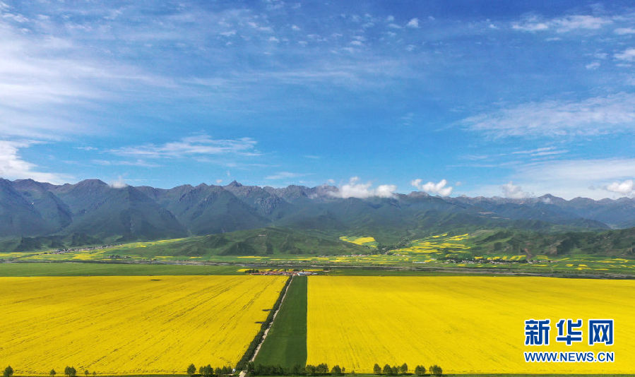 時(shí)下正值高原油菜花競(jìng)相綻放的季節(jié),在青海省海北藏族自治州門(mén)源回族自治縣,金黃色的油菜花在高原藍(lán)天和云霧映襯下形成一幅壯麗畫(huà)卷,吸引游客前來(lái)觀(guān)賞。