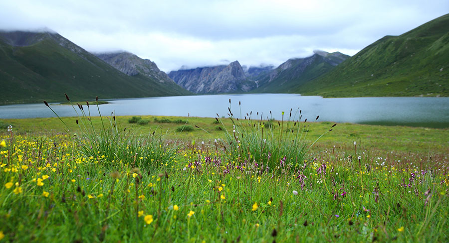 圖為年保玉則保護區(qū)內(nèi),五顏六色的小花鋪滿湖岸。劉歡 攝