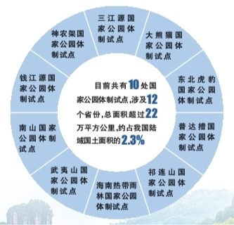 自2015年以來(lái),我國(guó)開(kāi)展了東北虎豹、祁連山、大熊貓、三江源、海南熱帶雨林、武夷山、神農(nóng)架、普達(dá)措、錢(qián)江源、南山等10處國(guó)家公園體制試點(diǎn)。試點(diǎn)區(qū)將各級(jí)各類(lèi)自然保護(hù)地整合劃入國(guó)家公園試點(diǎn)區(qū)范圍,對(duì)山水林田湖草等自然生態(tài)系統(tǒng)實(shí)行統(tǒng)一管理、整體保護(hù)和系統(tǒng)修復(fù)。