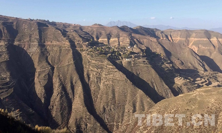 圖為搬遷前農(nóng)牧民在山間的聚居村落 圖片由尖扎縣扶貧開(kāi)發(fā)局提供