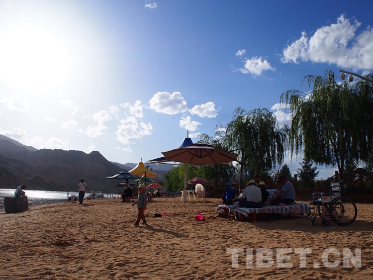 這下,村民們可忙壞了,有的開(kāi)辦了農(nóng)家樂(lè),有的在美食廣場(chǎng)經(jīng)營(yíng)土燒饃、酸奶、糌粑、釀皮等當(dāng)?shù)靥厣嬍?。德吉村從一個(gè)不知名的荒沙灘,華麗轉(zhuǎn)身成為青海省文化旅游的一張新名片,被游客稱為青海“小三亞”。