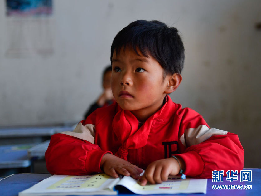 8月31日,在來塘村學(xué)校,一年級學(xué)生馬良在學(xué)習(xí)。新華社記者 張龍 攝