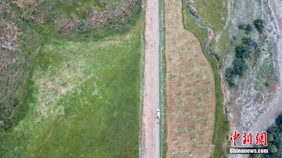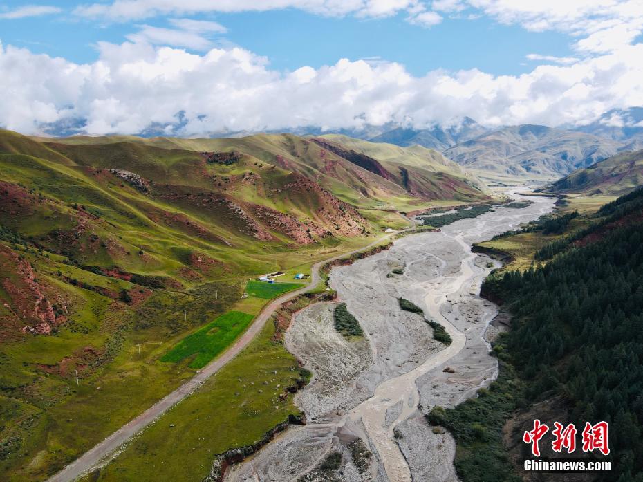 9月9日,航拍祁連山國(guó)家公園青海片區(qū)油葫蘆自然風(fēng)景區(qū)美景。初秋時(shí)節(jié),祁連山國(guó)家公園青海片區(qū)草地漸黃,天高云淡,勾勒出一幅色彩斑斕的秋日美景圖。中新社記者 李江寧 攝