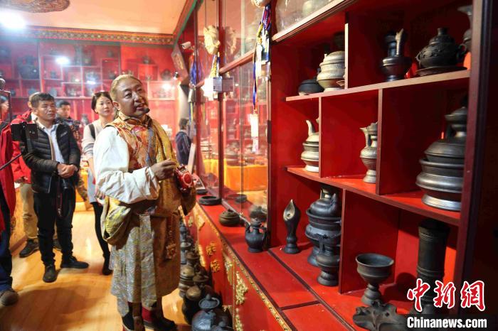 圖為青海省玉樹藏族自治州囊謙縣的國家級(jí)“非遺”傳承人白瑪群加介紹藏族黑陶手藝。張?zhí)砀?攝