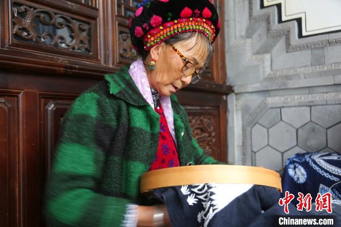 圖為云南省大理州白族老人展示手工絕活。張?zhí)砀?攝