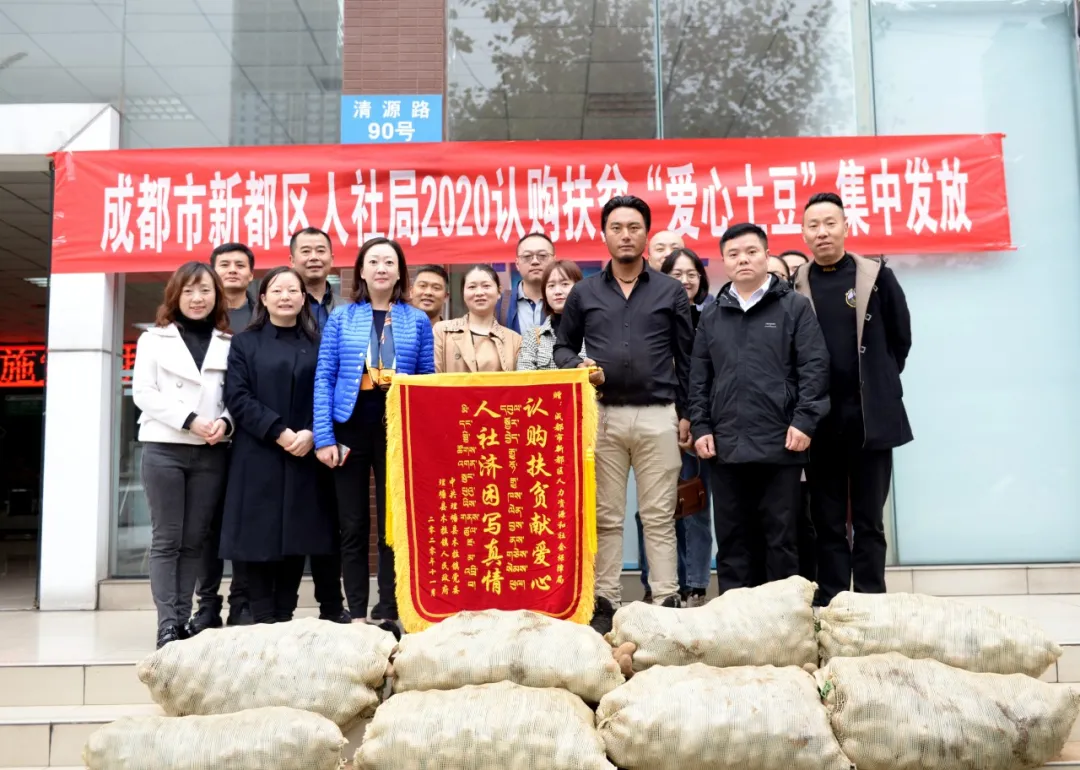 “感謝你們幫助認(rèn)購3萬余斤土豆……扎西德勒!”11月6日上午8點(diǎn)36分,來自理塘縣木拉鎮(zhèn)卡下村的“愛心土豆”車隊(duì)剛在新都區(qū)人社局停車場停穩(wěn),村長降央吉村一個躍步下車,為等候多時的人社局同志送上“認(rèn)購扶貧獻(xiàn)愛心、人社濟(jì)困寫真情”的錦旗。