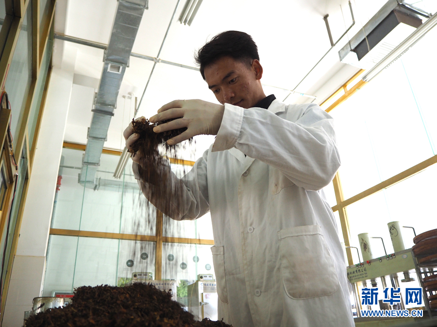 班瑪縣藏雪茶產(chǎn)業(yè)開發(fā)有限責(zé)任公司工作人員在晾曬藏雪茶。(資料圖)新華社記者 白瑪央措 攝