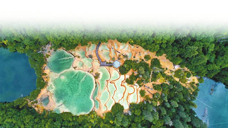 以景推城。在九寨溝,處處可見“生態(tài)優(yōu)先”的痕跡——生態(tài)擋墻間的動物通道,游客腳下的生態(tài)棧道、景區(qū)外的旅游環(huán)保法庭……