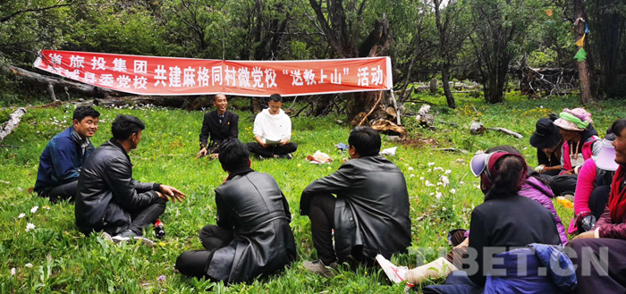 圖為四川旅投集團(tuán)、稻城縣委黨校共建麻格同村微黨?!八徒痰较x草山”活動
