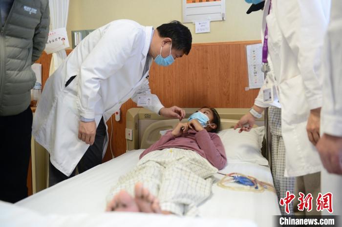 近日,一對來自青海玉樹、患肝包蟲病的姐弟在北京接受免費手術(shù)治療。手術(shù)由中國工程院院士、北京清華長庚醫(yī)院院長董家鴻親自主刀。圖為董家鴻院士為患者查房,了解病情。“同心·共鑄中國心”基金 供圖 中新社 發(fā) “同心·共鑄中國心”基金 攝