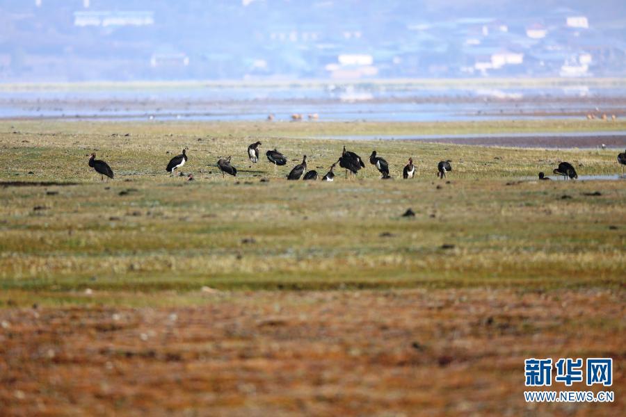 云南納帕海國際重要濕地成黑鸛國內(nèi)最大越冬停歇地