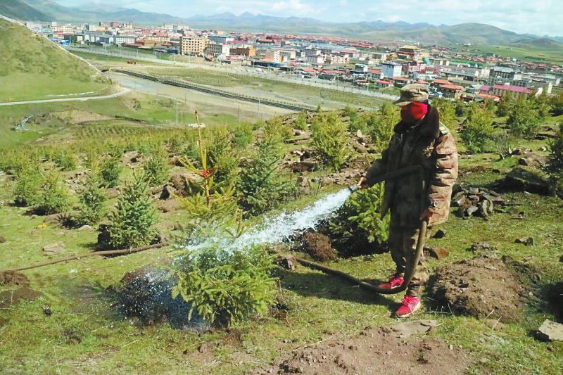 色達(dá)縣生態(tài)脆弱區(qū)治理后期管護。(色達(dá)縣林草局供圖)