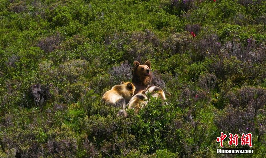 在四川省甘孜藏族自治州石渠縣蒙宜鎮(zhèn)蒙格村附近一處水草豐茂的山坡處拍攝時,偶然發(fā)現(xiàn)一只棕熊媽媽曬著陽光浴給三只小熊喂奶場景,棕熊媽媽喂奶結(jié)束后領(lǐng)著小熊寶寶們緩慢走向大山深處。[詳細] -