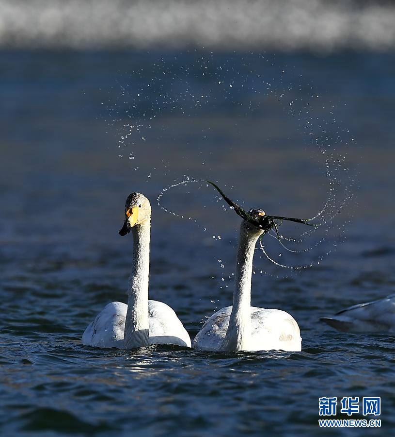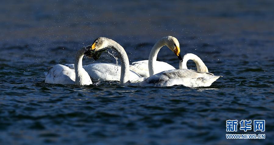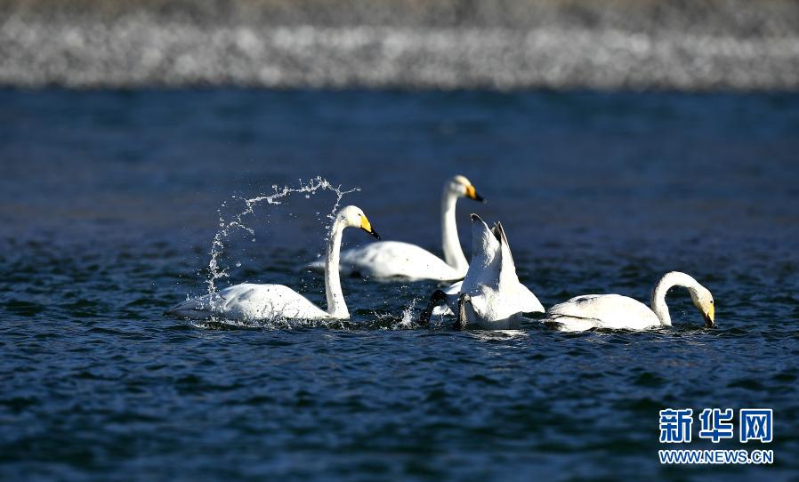 隨著氣溫回暖,位于青海省海南藏族自治州貴德縣境內(nèi)的黃河成為大天鵝的越冬“港灣”,它們?cè)诖艘捠场⑿蓓?,為冬日的黃河帶來勃勃生機(jī)。