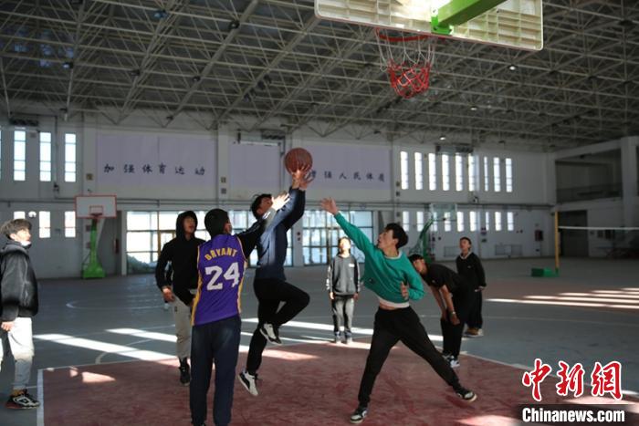 在一墻之隔的校園室內(nèi)風(fēng)雨操場里,卻是一派熱氣騰騰的景象,家住學(xué)校附近的十多名藏族學(xué)生們在室內(nèi)籃球場上激戰(zhàn)正酣。室外天寒地凍,而室內(nèi)操場平均溫度已經(jīng)達(dá)到零上15度,“以前沒有暖氣的時候,這里面冰冷冰冷的。今天外面這么冷,我們打了一會兒籃球,身上都出汗了!”藏族學(xué)生多杰東智一邊脫去外套,一邊開心地說。