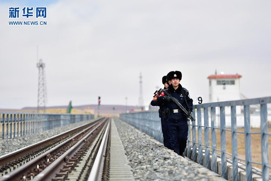 2月5日,沱沱河站派出所巡線民警在青藏鐵路沱沱河大橋巡查。新華社記者 張龍 攝