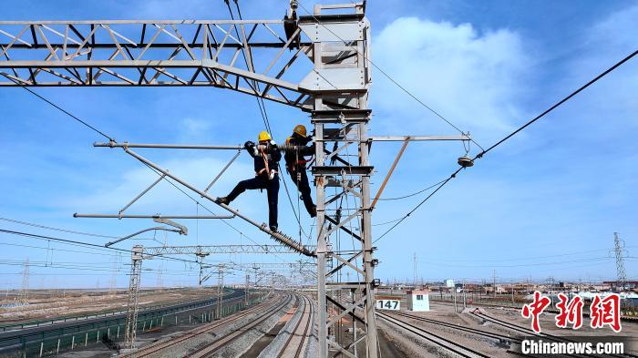就這樣,兩個女孩子不斷重復(fù)訓(xùn)練,心態(tài)越來越穩(wěn),爬桿的動作也越來越熟練。如今,“女蜘蛛俠”們已經(jīng)能熟練地檢修接觸網(wǎng)的各個部位,清理線路上的鹽分和風(fēng)沙。