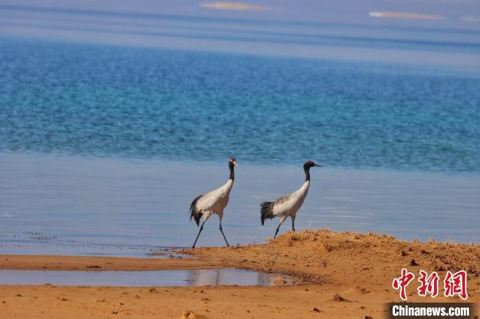圖為青海湖流域內(nèi)的黑頸鶴。青海湖景區(qū)保護利用管理局供圖