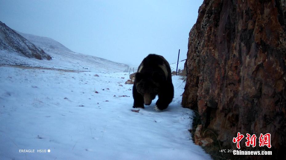 圖為相機(jī)抓拍到的棕熊活動(dòng)畫面。 青海原上草自然保護(hù)中心供圖