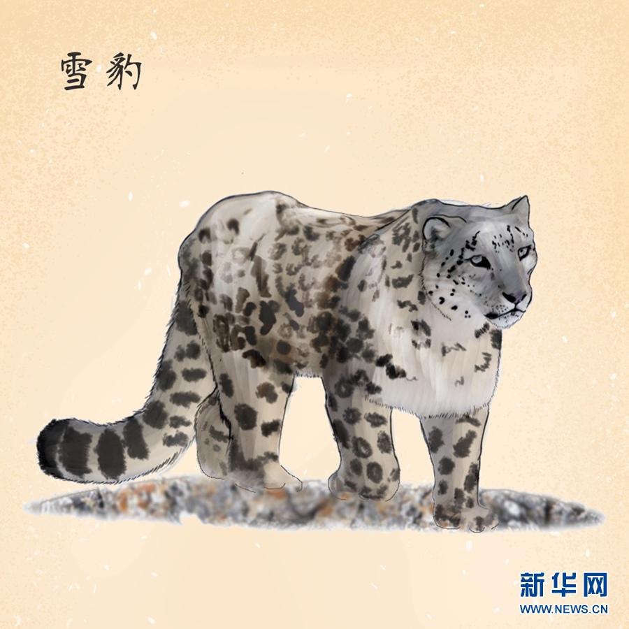 雪豹:國家一級保護動物。被稱為“雪山之王”,一般生活在海拔3000米以上的山里,經(jīng)常在雪線附近和雪地間活動。