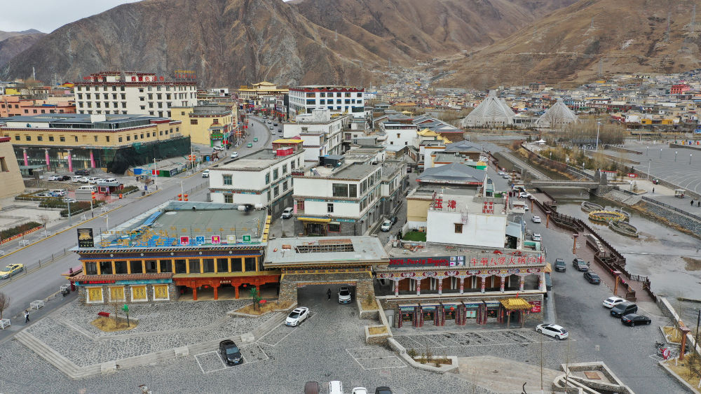 圖為2021年3月10日拍攝的玉樹市一處商業(yè)區(qū)(地震前為結(jié)古寺賓館)。