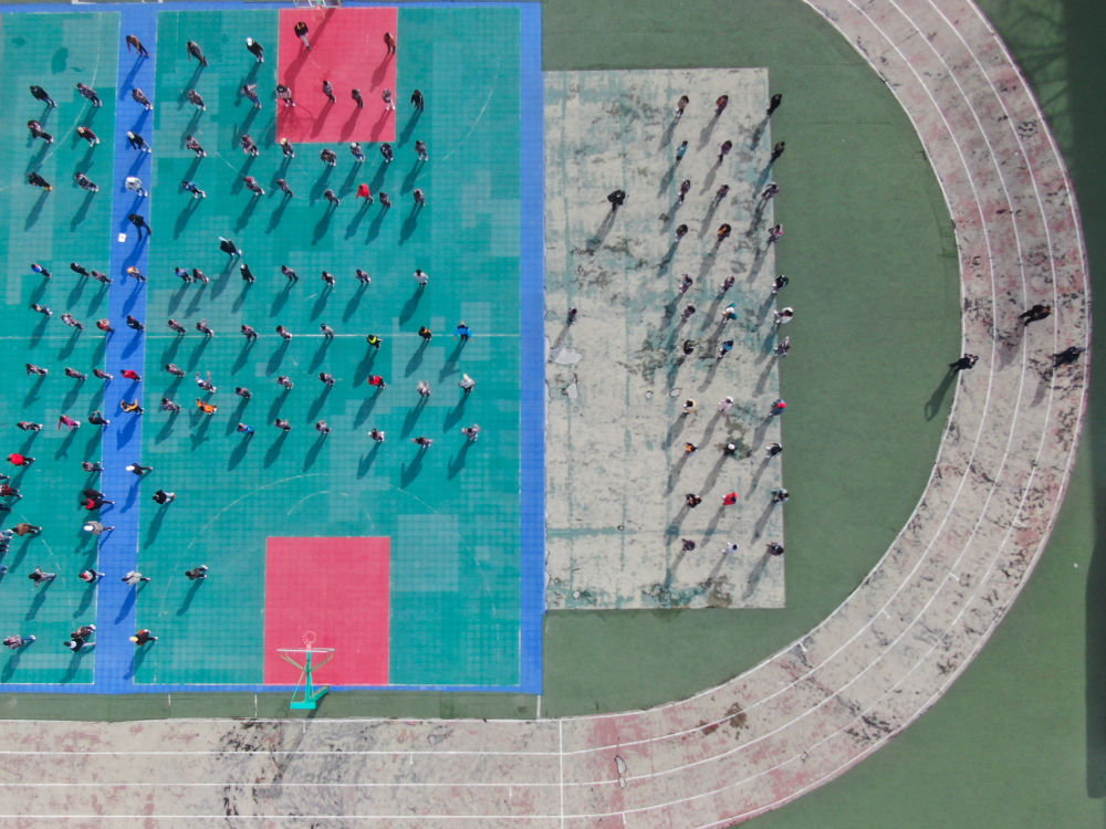 在青海省玉樹藏族自治州八一孤兒學(xué)校,學(xué)生們在進(jìn)行課間活動(dòng)(2020年4月3日攝)。 新華社記者 張龍 攝