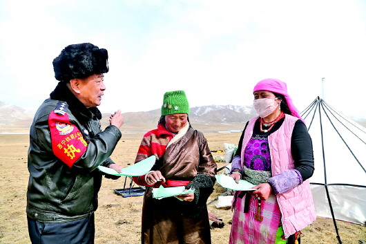 民警向沿線牧民宣傳法治安全常識(shí)。