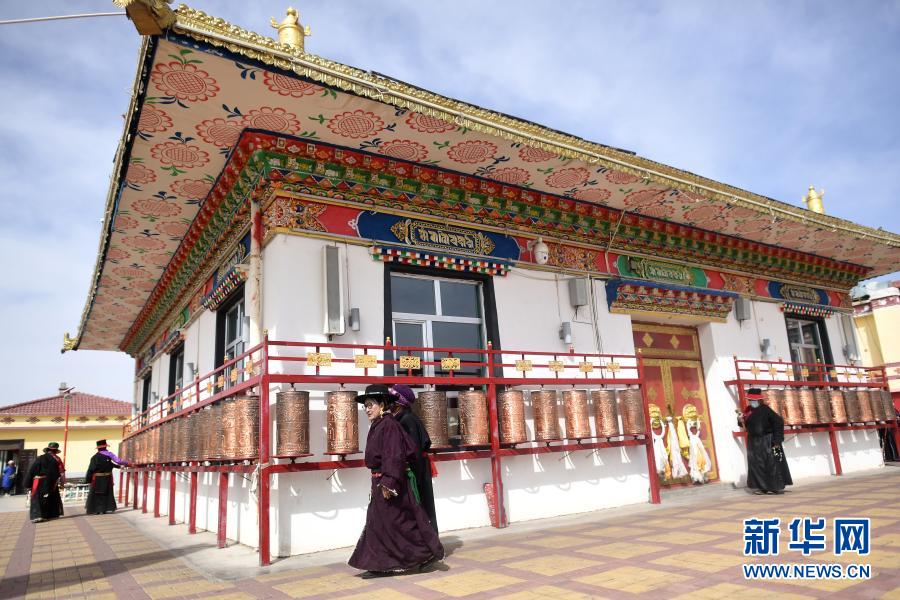 3月14日,老人們?cè)谥味嗫h幸福敬老院內(nèi)轉(zhuǎn)經(jīng)。新華社記者 張宏祥 攝