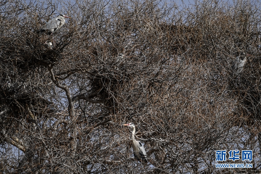 兩只蒼鷺來回飛舞忙碌建巢。新華網(wǎng) 卡婭梅朵 攝