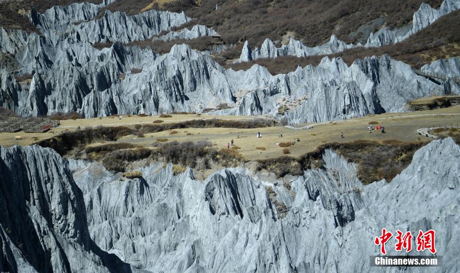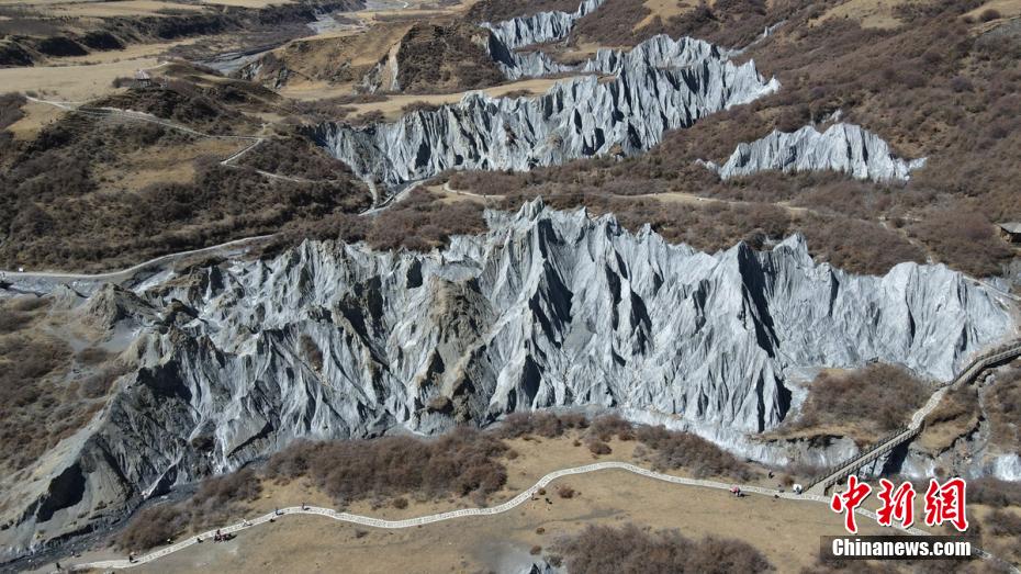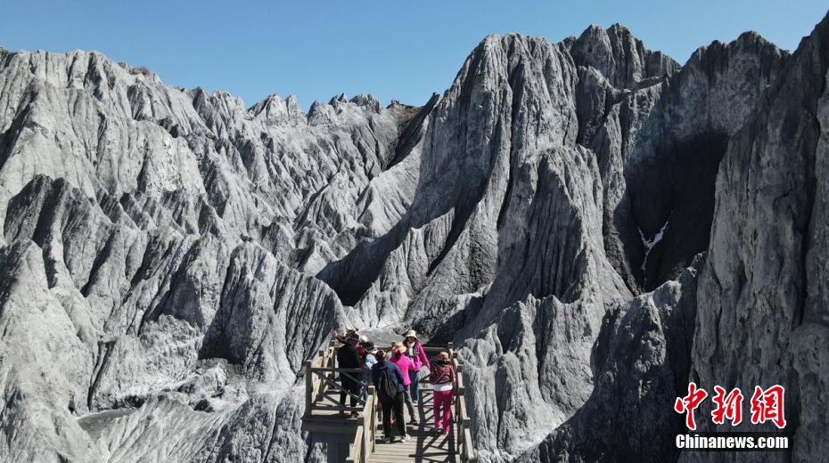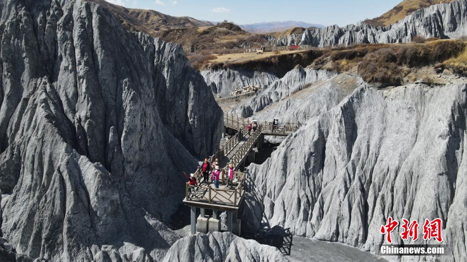 3月24日,四川省甘孜藏族自治州道孚縣八美鎮(zhèn)墨石公園吸引了不少游人前往打卡拍照。海拔約3400米的墨石公園總面積約5平方公里,埋藏于地下的巖土經(jīng)雨水長年沖刷、風(fēng)化等,自然形成了千姿百態(tài)的獨特地質(zhì)景觀。因“八美土石林”含鈣鹽,受空氣濕度影響,干燥季節(jié)呈淺灰、淺藍灰色,濕潤季節(jié)呈蒼墨色。劉忠俊 攝