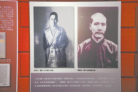 楊土司革命紀(jì)念館內(nèi)的楊積慶與范長(zhǎng)江照片。新甘肅·甘肅日?qǐng)?bào)記者 孟捷 攝