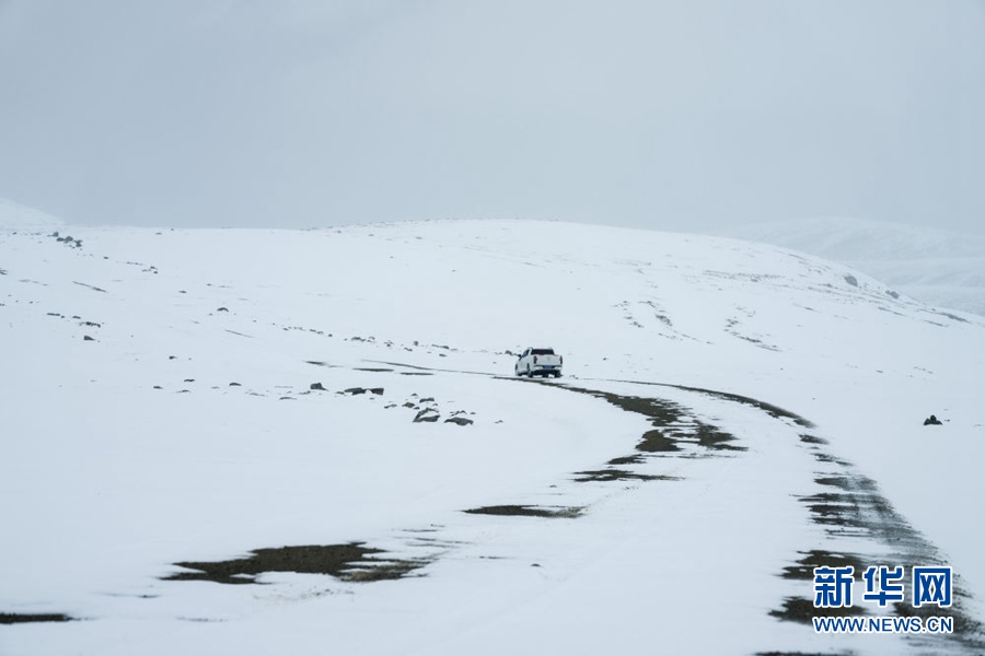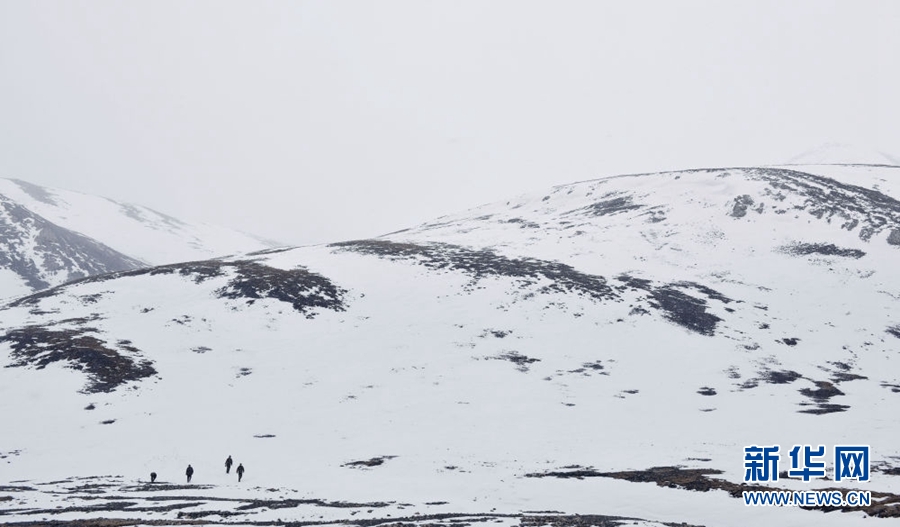 4月23日,祁連山國(guó)家公園沙龍灘管護(hù)站的生態(tài)管護(hù)員冒雪徒步巡護(hù)。新華社記者 費(fèi)茂華 攝